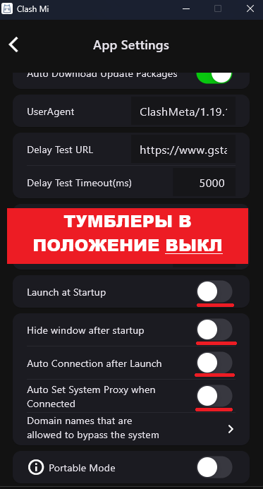 Запустить Clash Mi от имени администратора. Далее перейти в App Settings и выключить тумблеры, отвечающие за автозагрузку/автозапуск приложения.